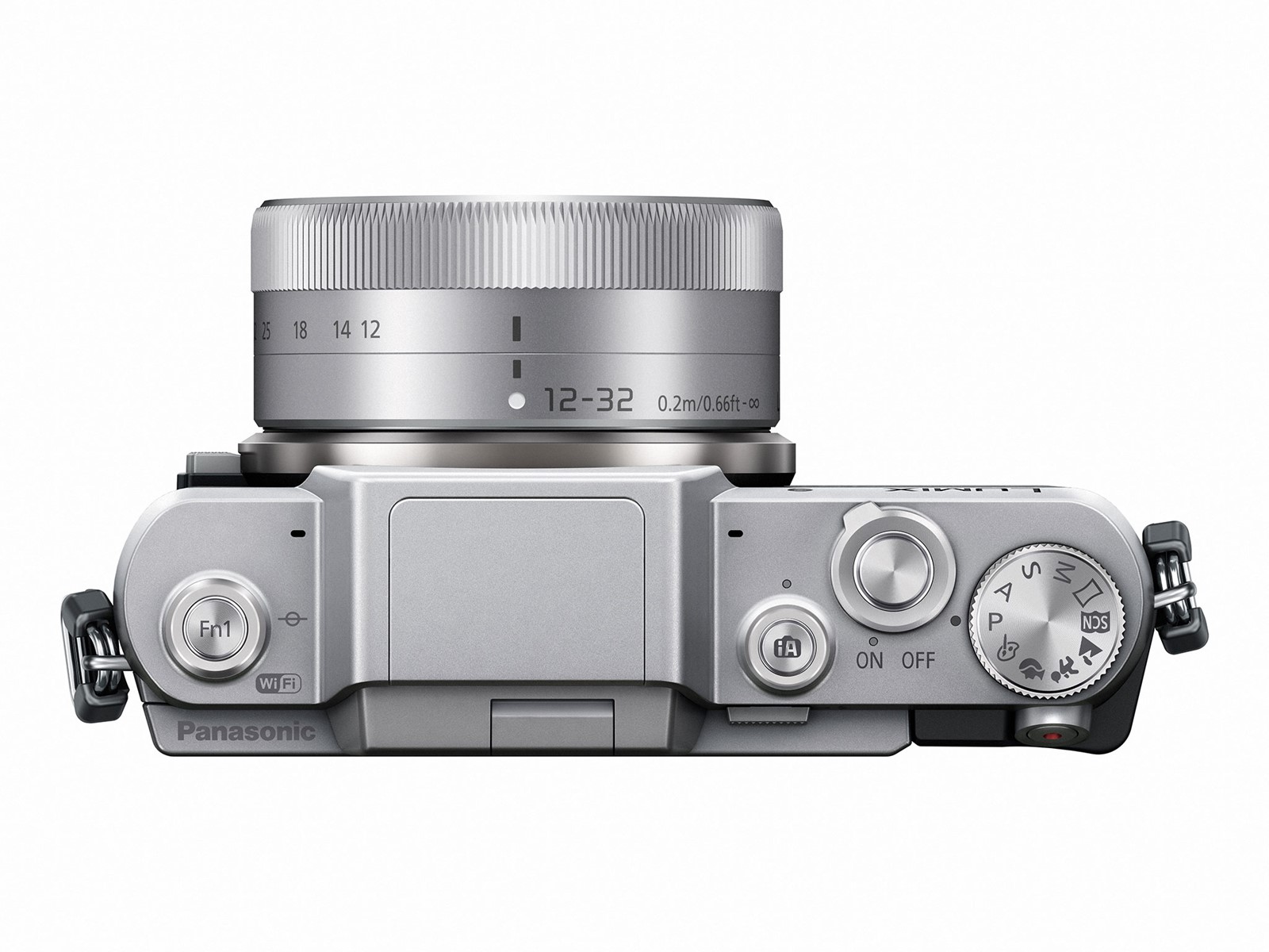 La parte superiore si apre con il pulsante funzione personalizzabile Fn1, per default assegnato al Wi-Fi. Seguono il piccolo flash a scomparsa, azionato meccanicamente da un'altrettanto piccolo slider posto appena sopra il display, il pulsante iA, che attiva l'omonimo programma automatico Pansaonic, il pulsante di scatto con selettore di accensione concentrico e la ghiera dei programmi.