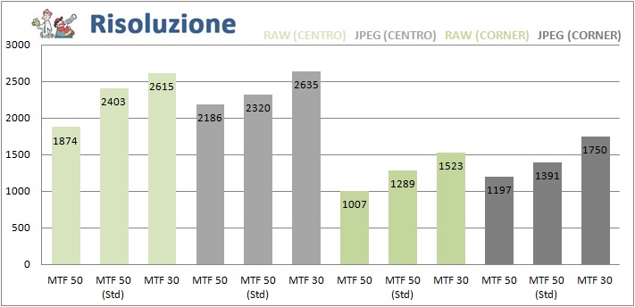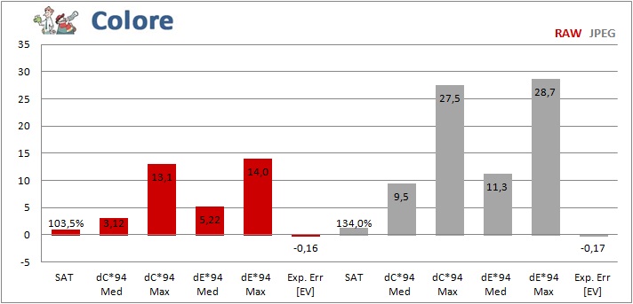 Nella media il comportamento cromatico. Il JPEG prodotto in-camera con impostazioni standard è come sempre molto saturo, ma non eccessivamente inciso, e mantiene dunque un look piacevole e naturale.