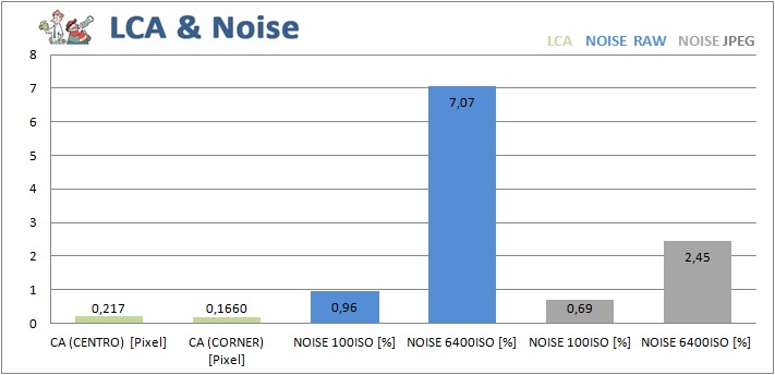 Il rapporto segnale/rumore, e di conseguenza il comportamento ad alti ISO, è ovviamente uno dei punti di forza di questo modello. L'aberrazione cromatica ai bordi è sempre ben controllata.