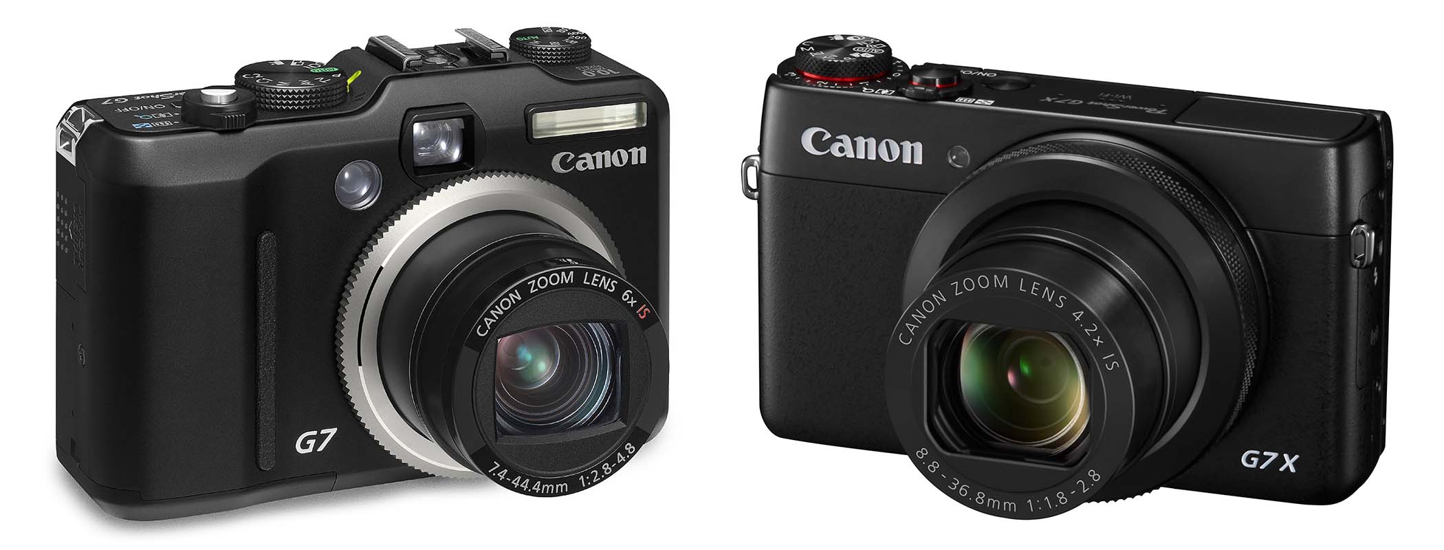 Generazioni a confronto: PowerShot G7 (10/2006) e PowerShot G7X (10/2014). A 8 anni esatti di distanza, il sensore delle compatte di fascia alta è passato da 1/1.8" - 10 Mpixel a 1" - 20 Mpixel. La gamma ISO è passata da 80-3200 a 125-12.800, e anche l'apertura massima si è espansa: da f/2.8 costante del modello 2006 a f/1.8-2.8 del modello 2014; questo, però, grazie a anche a uno zoom meno estremo, equivalente a 24-100mm (4.2x) contro i 35-210mm equivalenti (6x) della vecchia PowerShot G7. Naturalmente, anche lo spessore fisico di quest'ultima era maggiore (106x72x43mm contro 103x60x40mm).