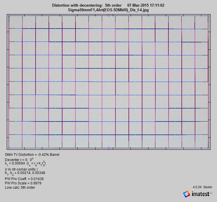 In termini assoluti, il Sigma si mantiene sempre - al centro come a bordi, e già a partire da f/1.4 - al di sotto della soglia di 0,5 pixel, che può essere considerata la minima quantità rilevabile a occhio nudo.
