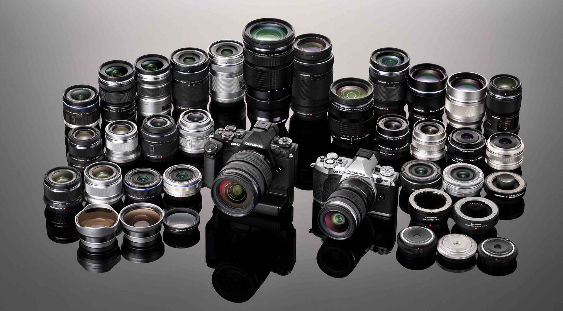 Come parte del consorzio Micro Quattro Terzi, le OM-D possono contare su un parco ottiche ampio e consolidato. Ottiche Olympus "native" comprendono una linea standard M.ZUIKO, una linea di categoria superiore M.ZUIKO Premium e, da poco, anche una linea professionale M.ZUIKO Pro, che comprende il Digital ED 12-40mm 1:2.8 e il Digital ED 40-150mm 1:2.8, entrambi tropicalizzati. Alle ottiche Olympus si devono poi aggiungere quelle della consociata Panasonic (Leica) e quelle dei costruttori indipendenti come Sigma, Tamron e Tokina, anche se la disponibilità di obiettivi universali è tutt'ora limitata.