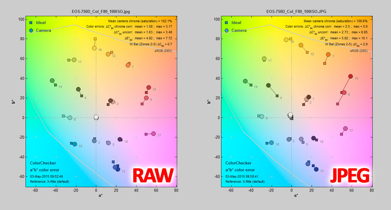 Partendo dal RAW ed effettuando un corretto bilnciamento del bianco, si ottengono risultati impeccabili dal punto di vista cromatico, senza necessità di calibrazione. Il JPEG è, come sempre, leggermente più saturo, ma altrettanto valido.