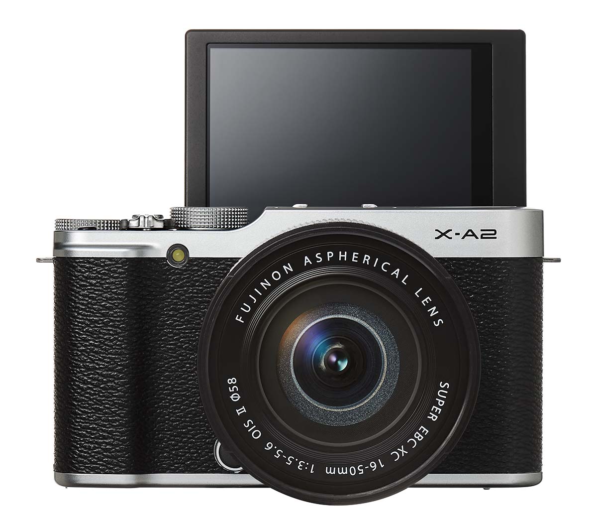 La X-A2 misura circa 117x67x40mm e pesa 350g (inclusa batteria e memory card). Risulta ben bilanciata con zoom compatti come l'XC16-50mm con cui viene proposta in kit, e con diversi altri "prime" del corredo Fujifilm (ad esempio gli XF18mmF2 R e XF27mmF2.8). Meno adatta, invece, a montare obiettivi più ingombranti come il nuovo XF50-140mmF2.8 R, anche a causa della mancanza di mirino che obbliga alla classica impugnatura "da mirrorless" a braccia tese, meno stabile.