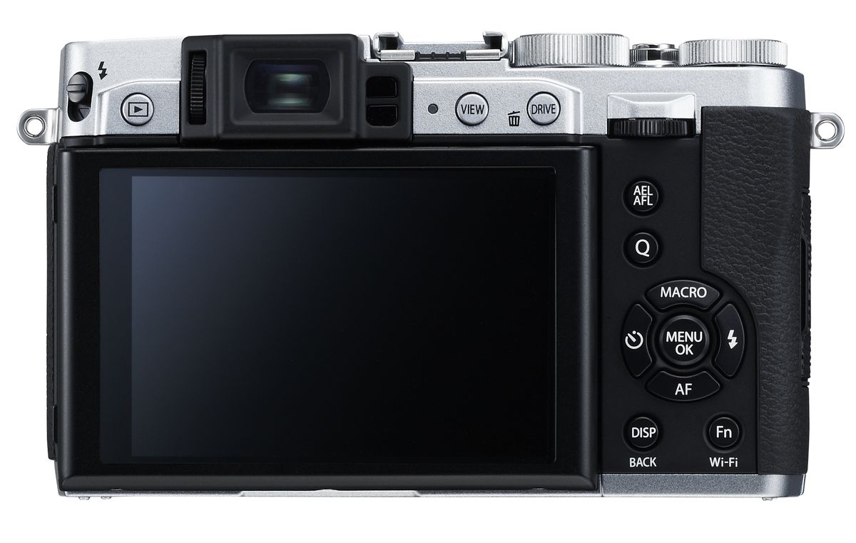 Sul dorso, ma ancora parte del top, si trovano due importanti pulsanti: View, per la gestione di display e mirino, e Drive, per la scelta della modalità di avanzamento; non manca, inoltre, una ghiera di comando da azionare col pollice che comanda il parametro libero di scatto. Appena sotto la ghiera di comando, si trovano i pulsanti AE/AF Lock e il pulsante Q, che consente di accedere all'ottimo Quick menu Fujifilm già più volte apprezzato su altri modelli dello stesso costruttore. Se si esclude un pulsante Fn assegnato di default al Wi-Fi, che svela la presenza di questa novità, il dorso non presenta altri elementi significativi.