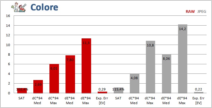 Buono il bilanciamento automatico del bianco e l'accuratezza media dell'esposimetro, il che porta a una fedeltà cromatica più che soddisfacente per una compatta. Le ampie possibilità di personalizzazione del JPEG consentiranno a chiunque di ottimizzare la resa delle immagini prodotte in-camera.