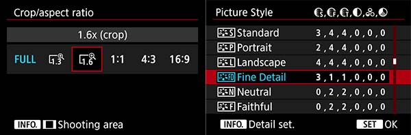 Le due principali novità "software" della EOS 5DS: le modalità ritaglio e il Picture Style Dettaglio fine.