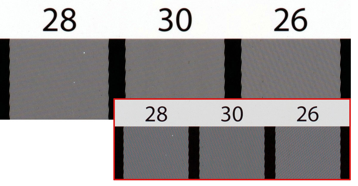 A titolo di confronto, la pur ottima 5DMarkIII, che era fino all'uscita della 5DS la reflex di maggior risoluzione nella gamma Canon, nelle stesse condizioni fa registrare circa 3300 LW/PH.