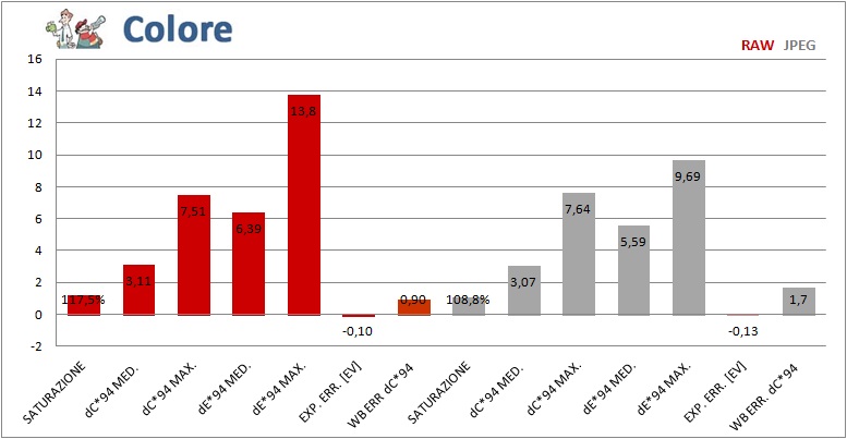 Molto buone l'esposizione e il bilanciamento automatico del bianco, più preciso rispetto alla 5D Mark III. Gli errori cromatici non sono tra i più contenuti, soprattutto a causa della saturazione elevata ottenuta con le impostazioni standard.