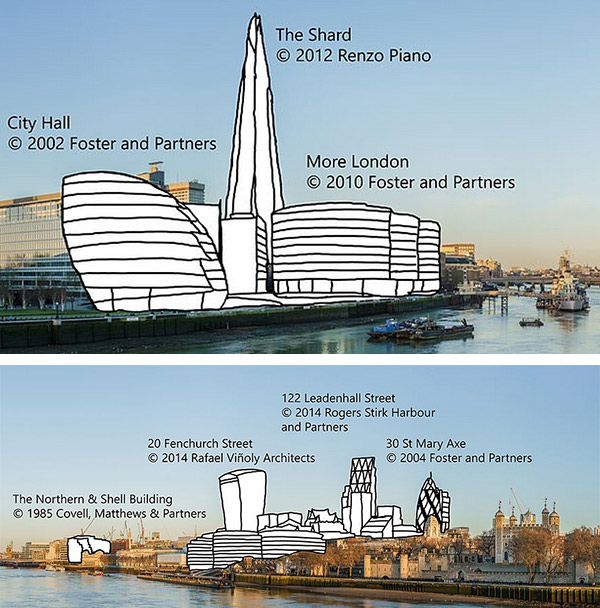 Esempio pratico: il Tower Bridge di Londra sarebbe stato comunque ok (completato nel 1894, architetto sicuramente passato a miglior vita), ma completamente differente sarebbe il discorso per una foto attuale del centro città zona Tamigi.