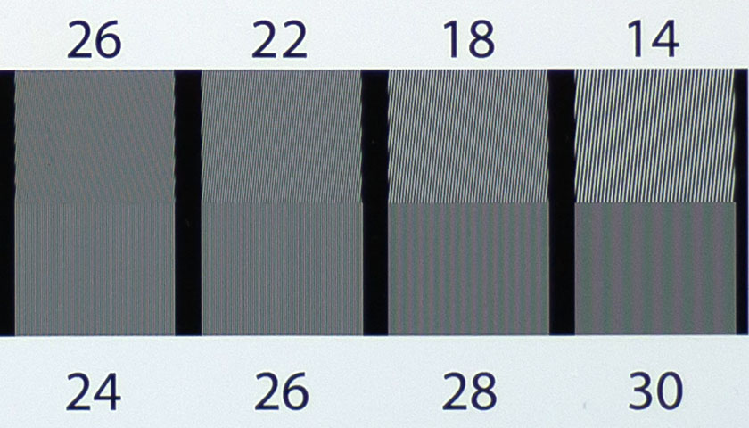 Nitidezza al centro, a f/5.6 (in alto) e alla massima apertura (in basso).