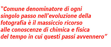 Comune denominatore di ogni singolo passo nell'evoluzione della fotografia è il massiccio ricorso alle conoscenze di chimica e fisica del tempo in cui questi passi avvennero: la prima fotografia documentata (1826) era frutto di un'esposizione di otto ore su una lastra di rame spalmata di pece di Giudea (bitume e argilla). Di ben cento anni prima (1727) è la scoperta del primo materiale fotosensibile quando Johann Heinrich Schulze, un chimico tedesco, notò che un composto di argento, carbonato di calcio e acido nitrico anneriva le pareti della bottiglia in cui era contenuto, una volta esposta alla luce.