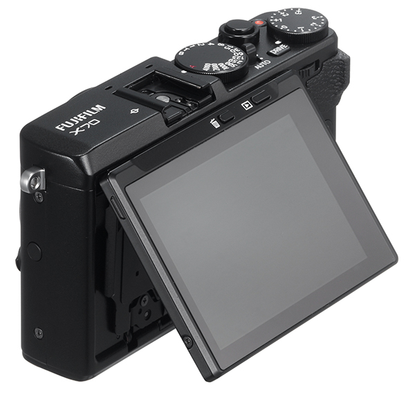 Si tratta anch'essa di una compatta, ma di tutt'altra stirpe e caratura Fujifilm X70. La si può definire la sorella minore di X100, per molti motivi. Innanzitutto, anche se rinunciando al mirino ibrido o elettronico, riduce al minimo gli ingombri, offrendo dalla sua però un display orientabile da 3" e 1,4 milioni di punti, che può ruotare di 180° per foto dall'alto, dal basso e selfie. La fotocamera pesa 340 grammi e ospita al suo interno il collaudato sensore APS-C X-Trans CMOS II da 16,3 megapixel con rilevazione di fase sul piano focale, che lavora in accoppiata al processore d'immagine EXR. La fotocamera permette di scattare con sensibilità comprese tra 200 e 6400 ISO nativi e fino a 51.200 ISO in modalità espansa.