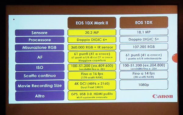 Alcune differenze fra EOS-1DX Mark II e EOS-1DX