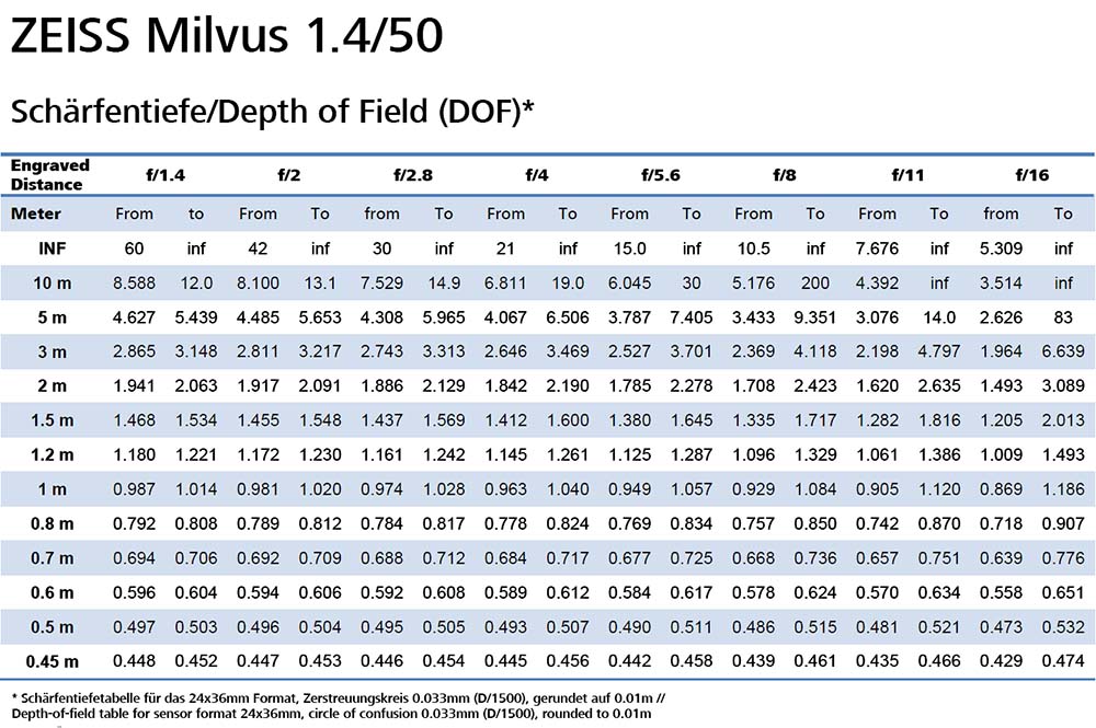 Classico standard luminoso, si adatta potenzialmente a molteplici scopi fotografici. Zeiss ha voluto utilizzare per questo obiettivo lo schema Distagon, più adatto, secondo il costruttore, a garantire un'elevata qualità d'immagine anche a tutta apertura.