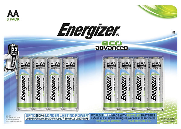 Le batterie Energizer Eco-Advanced al momento sono costituire dal 4% di materiale riciclato