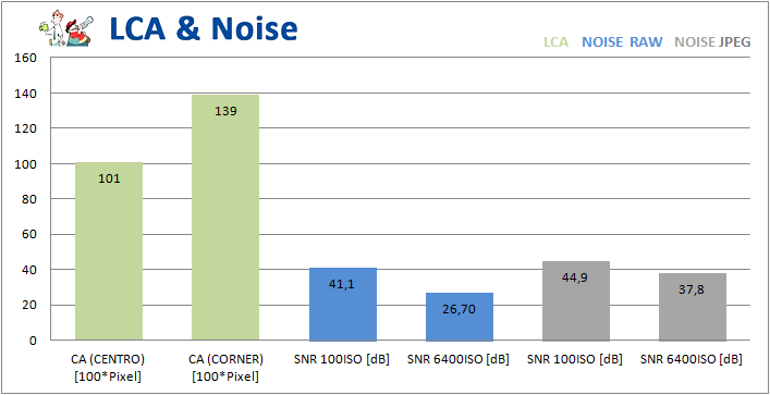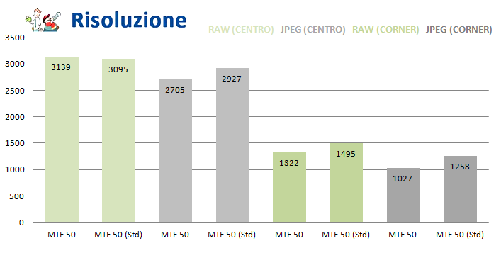Nella media per fotocamere con sensore da 24 Mpixel, la A6300 assicura, con l'obiettivo in uso, un elevatissimo livello di dettaglio. I punteggi MTF totalizzati sono praticamente equivalenti a quelli fatti registrare da sensori Full Frame di pari risoluzione testati con ottiche di tutto rispetto (D750 con AF-S Nikkor 50mm f/1.4G, Leica Monochrom 245 con Summicron-M 1:2/50).