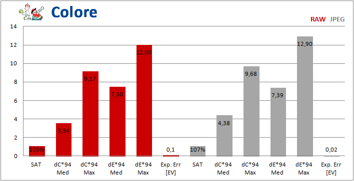Saturazione con impostazioni standard ed esposizione sono praticamente perfette, ma il bilanciamento automatico del bianco non è impeccabile in condizione di luce artificiale o mista, pertanto in queste condizioni consigliamo di utilizzare il formato RAW e di effettuare un'ottimizzazione a posteriori del punto di bianco.