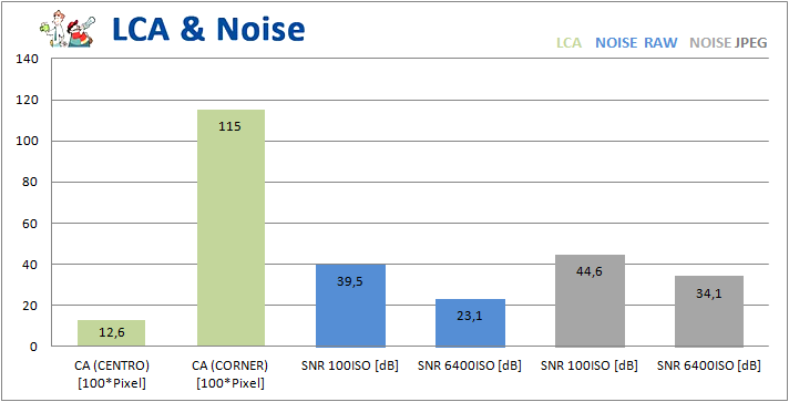 Il rapporto segnale/rumore del RAW è sotto la media, quello del JPEG leggermente sopra la media delle 24 Mpixel concorrenti. Questo si traduce in un JPEG pesantemente elaborato dei filtri di de-noise e, anche per questo, meno nitido e inciso di quello prodotte da altre concorrenti.