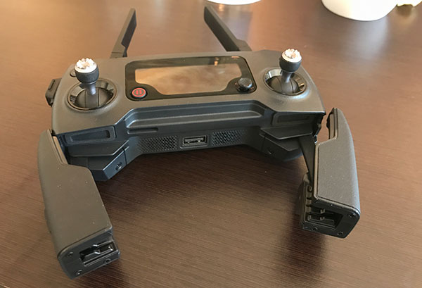 Parte della semplicità di controllo deriva anche dall'essenzialità del controller, compatto almeno tanto quanto il drone stesso, si ripiega completamente su se stesso fino a raggiungere le dimesioni di un comune telecomando da televisione. I joystick removibili permettono inoltre di trasportarlo tranquillamente anche nella tasca dei nostri pantaloni. Il sistema di antenne, completamente rinnovato permette di pilotare il drone fino ad una distanza massima di 7 km; distanza che è tuttavia limitata per legge a 4 km in praticamente tutta Europa.
