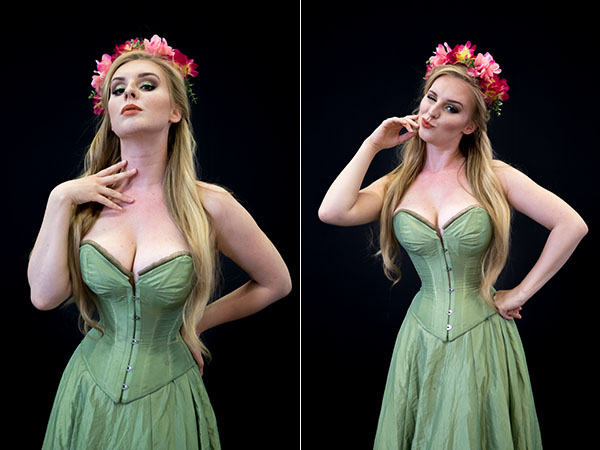 In luce naturale come in studio: il particolare qui sopra, è stato estratto da un'immagine scattata a Photokina, con la sola illuminazione dei padiglioni - 1/200s, f/2.8, 3200 ISO. Modella: Troys-Seducement.
