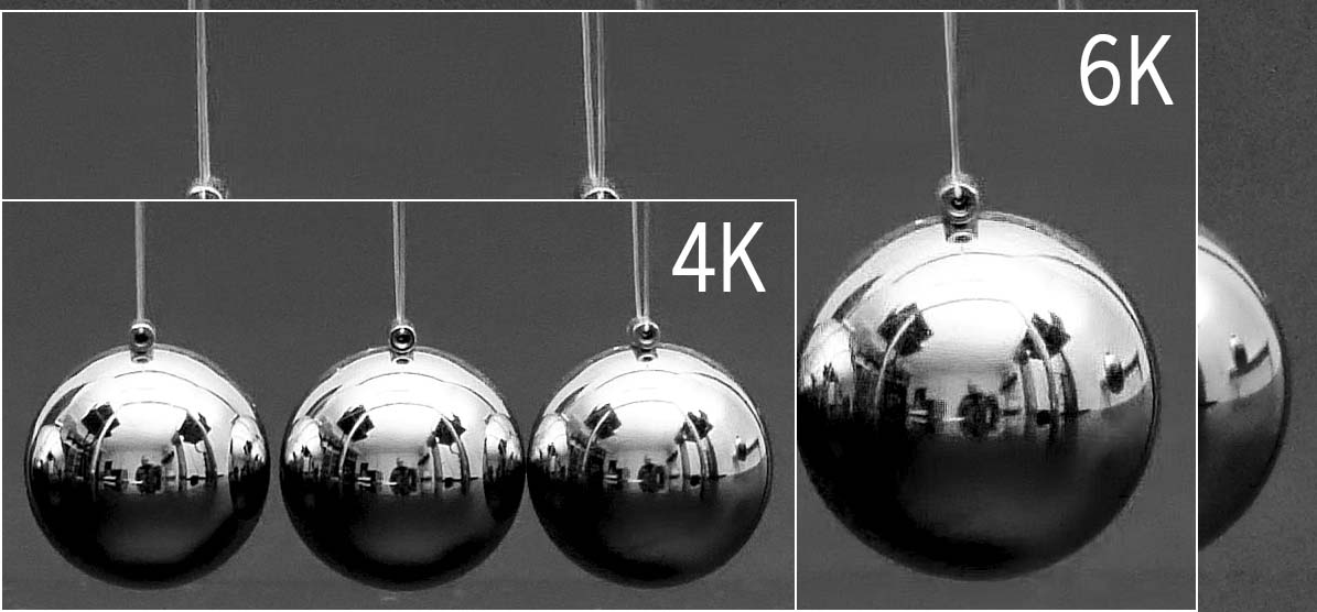 Un confronto relativo tra le dimensioni dei file prodotti con 4K Photo, 6K Photo, e a piena risoluzione (sullo sfondo). Come si nota, le immagini 6K Photo non sono significativamente più piccole del pieno formato (circa 18,5 contro 20 Mpixel) - tra l'altro, la risoluzione 6K Photo è superiore a quella pieno formato della generazione precedente (circa 16 Mpixel).
