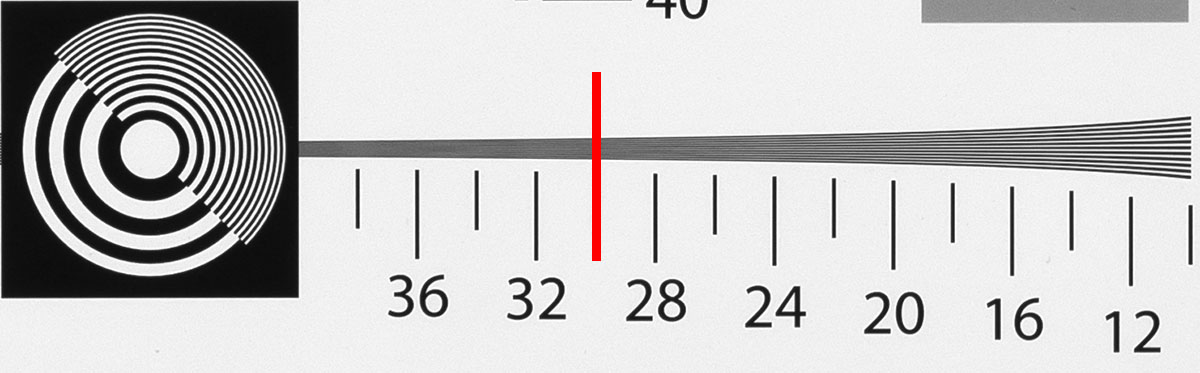 Il JPEG, a parità di condizioni, viene ottimamente sviluppato in camera (si notino, nella pagina successiva, i valori ai bordi molto simili a quelli da noi ottenuti ottimizzando il RAW) ma "perde" inevitabilmente qualche punto – circa 2700 LW/PH.