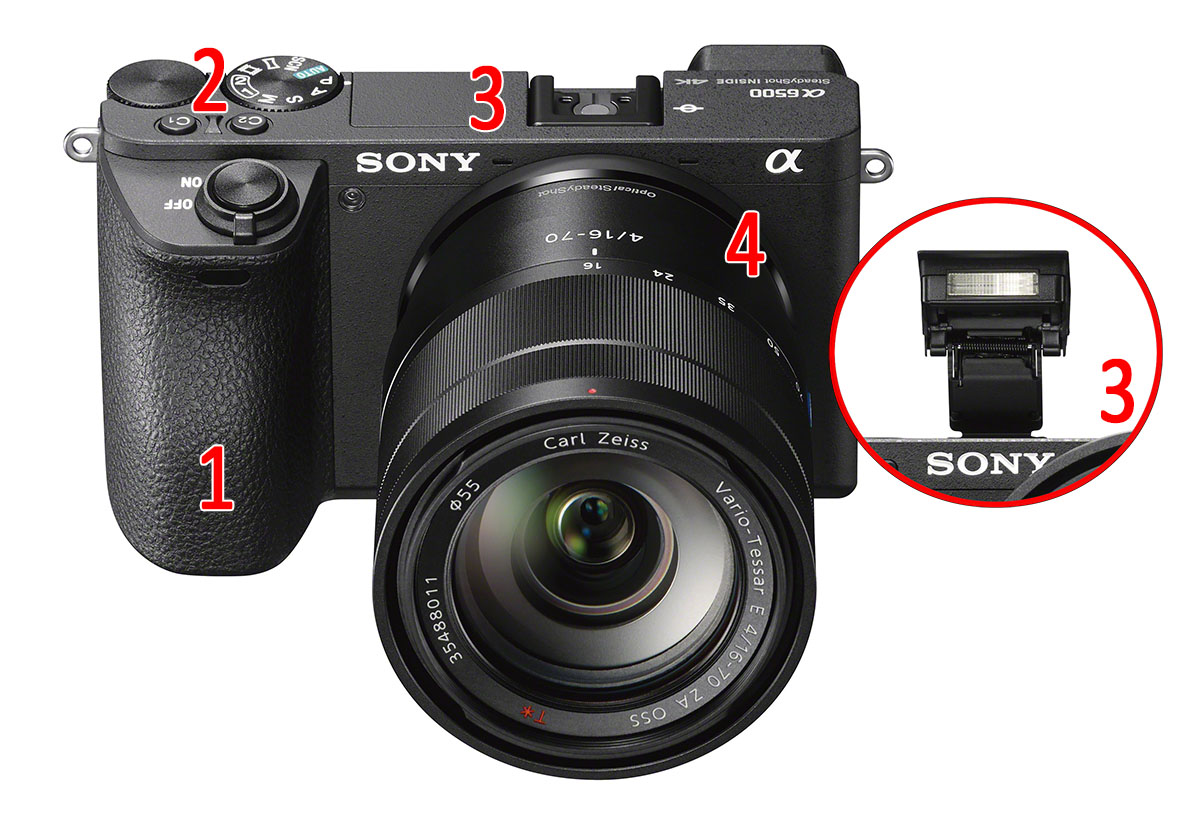 3 - Disponibili sia un piccolo flash pop-up, NG 6, sia la slitta a contatto caldo con contatti elettrici supplementari (la cosiddetta Multi-interfaccia Sony).