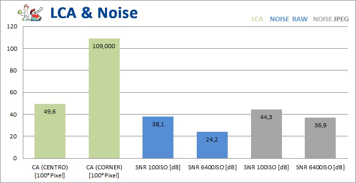 Il rapporto segnale/rumore non è un punto di forza del sistema MQT. Purtroppo per Panasonic, il risultato della GX800 è inferiore anche a quello della GH5, che a parità di formato utilizza un sensore di maggiore risoluzione.