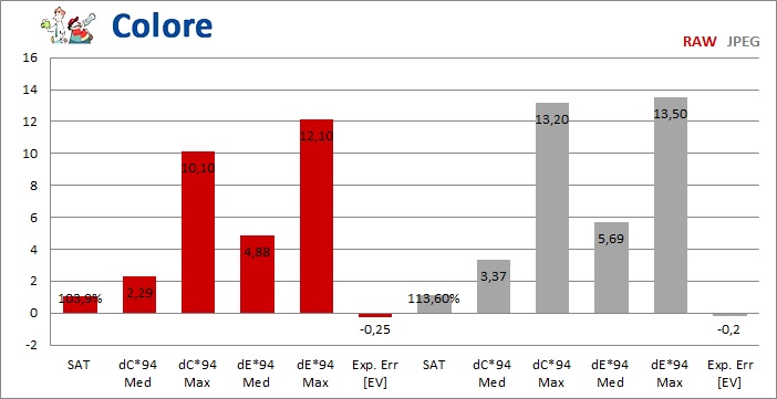 Buono il comportamento colore, soprattutto per il RAW, partendo dal quale di ottiene una fedeltà cromatica davvero invidiabile. Anche il JPEG appare comunque equilibrato, con errori cromatici inferiori alla media.