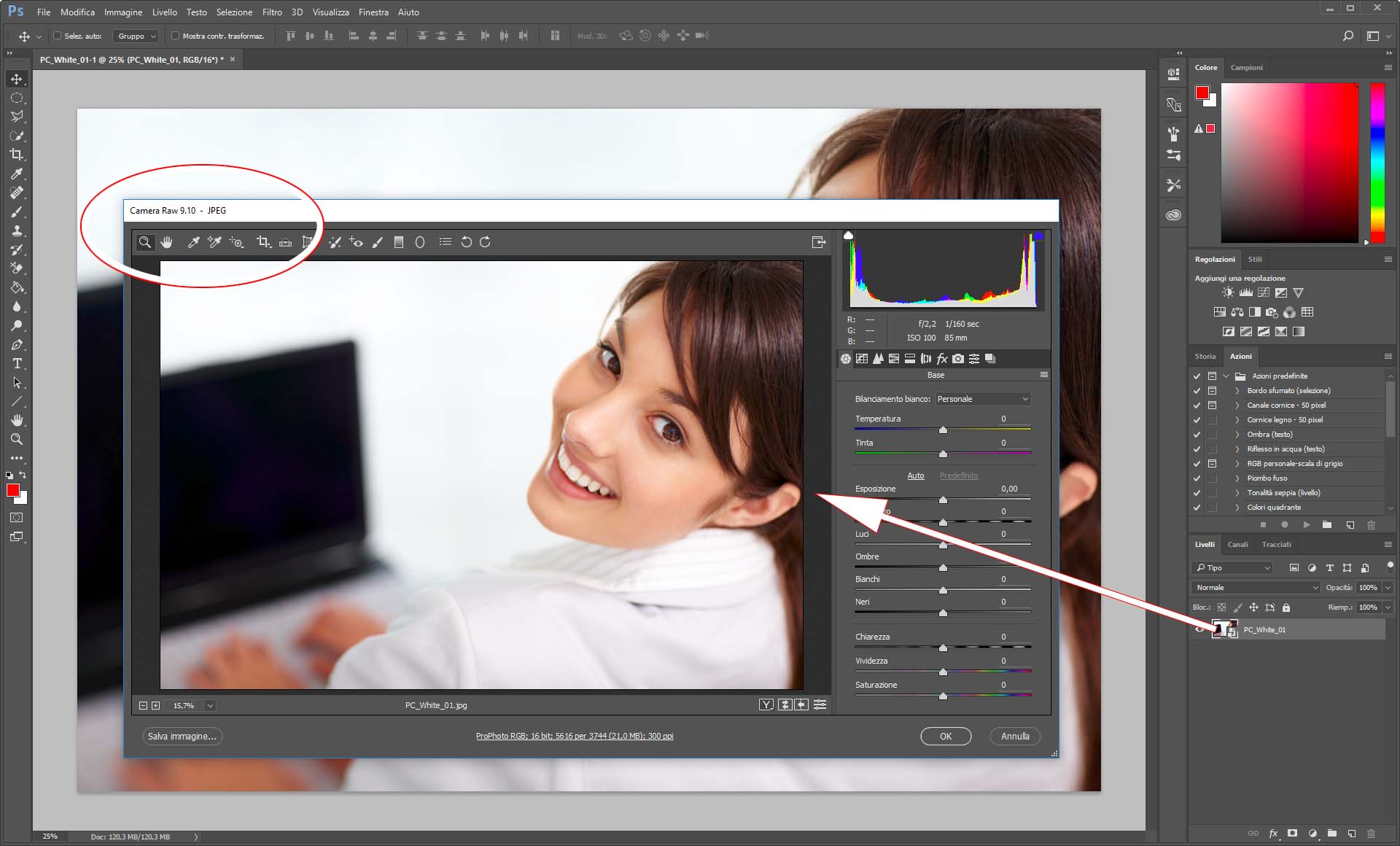 NOTA: È possibile aprire come Oggetti avanzati, modificabili in Camera RAW, anche file JPEG.