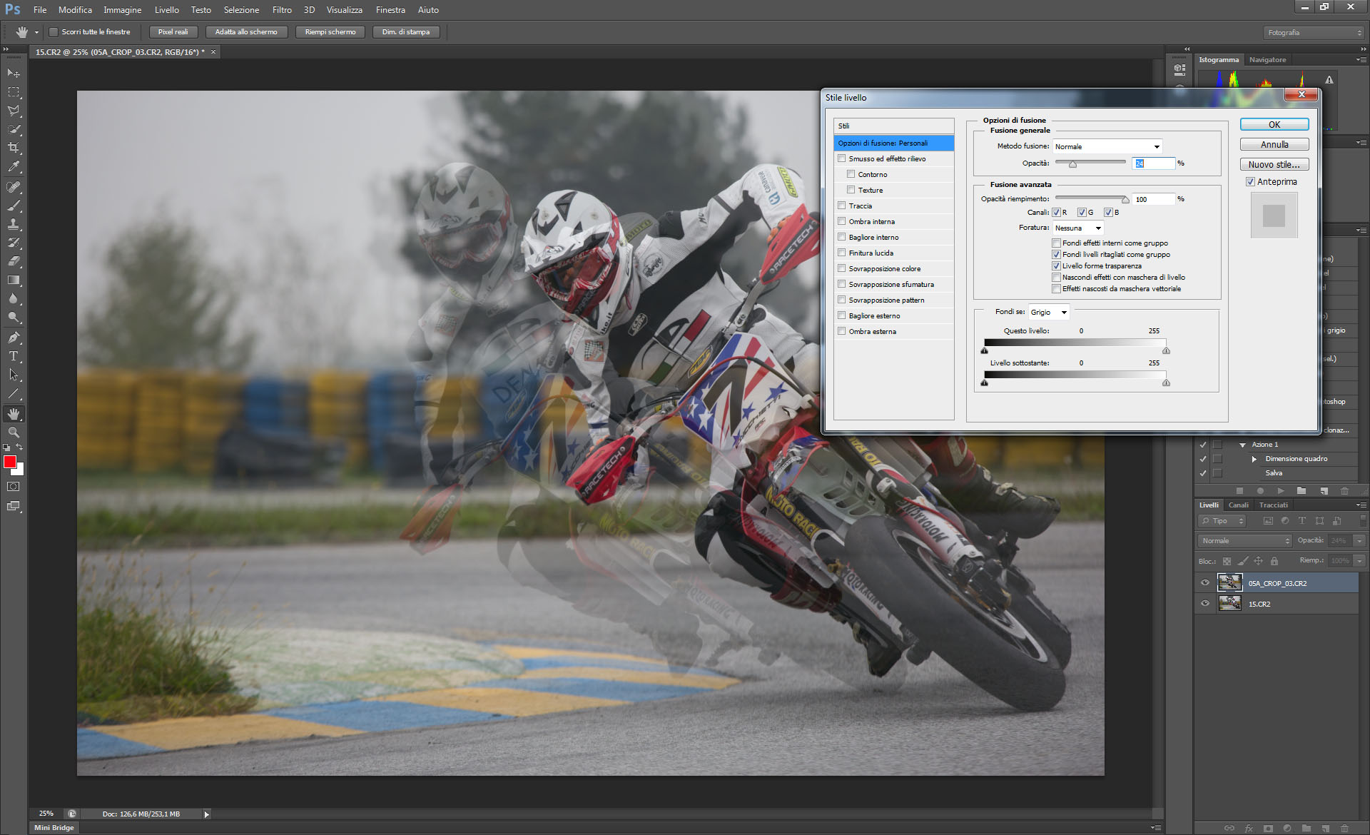 Due immagini fuse dopo essere state aperte come livelli in Photoshop (Foto > Modifica in > Apri come livelli in Photoshop).