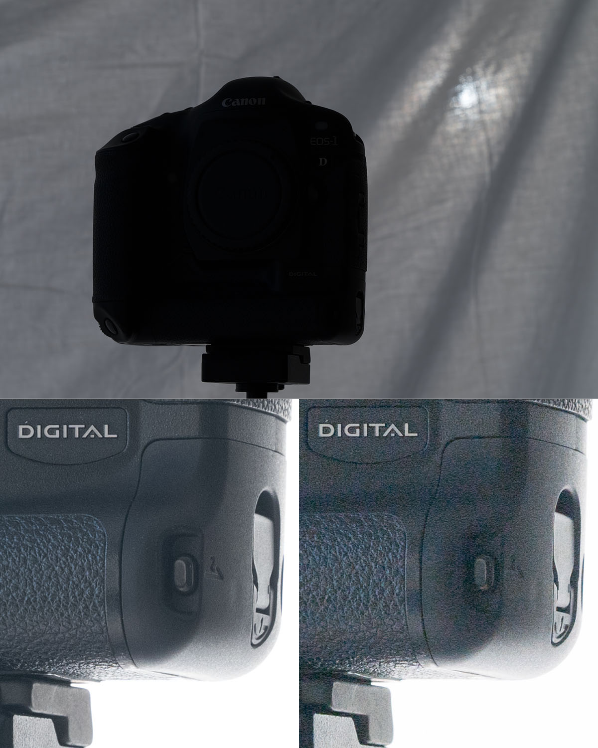 Recupero ombre e latitudine di posa. A sinistra, particolare ripreso a 3200 ISO, a destra particolare della stessa scena ripreso a 100 ISO (-5EV), con seguente sovraesposizione di +5EV in post-produzione. Buon comportamento, allineato alle dirette concorrenti (collocheremmo la A9 in posizione intermedia tra la 1D X II e la D5, con minime differenze tra le tre). In vetta alla classifica generale si trovano però altri sensori Sony, tra cui quelli che equipaggiano A7 II e A7R II.