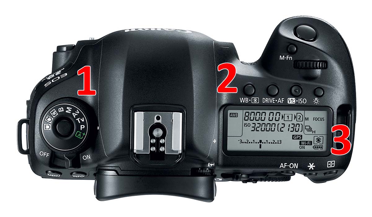 Familiare anche il display LCD secondario, che mostra due delle novità di questo corpo macchina: integrazione di rete Wi-Fi, con possibilità di invio file tramite FTP/FTPS (richiede smartphone connesso ed EOS Utility) e GPS.