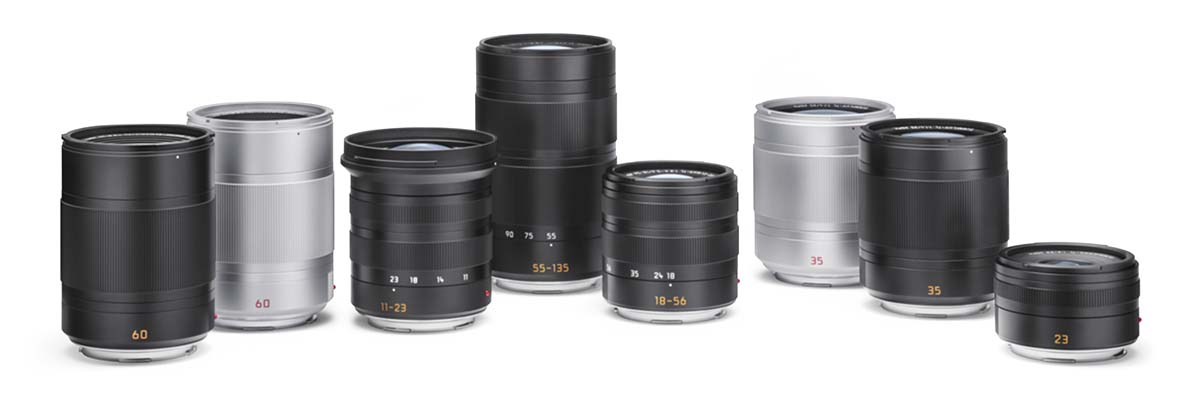 Quattro, invece, le focali fisse, incluso il recentissimo pancake Elmarit-TL 1:2.8/18 ASPH che si aggiunge ai già disponibili Summicron-TL 23 mm f/2 ASPH e il Summilux-TL 35 mm f/1.4 ASPH, particolarmente adatte al reportage, e all'APO-Macro-Elmarit-TL 60 mm f/2.8 ASPH.