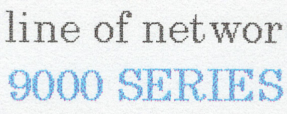 Abbiamo poi eseguito altri test bassati su un documento campione di 20 pagine, misto testo/grafica con copertura media del 5%, ottenendo i risultati riassunti nella tabella seguente.Qui sopra, invece, un esempio della resa delle tre impostazioni qualitative utilizzate.