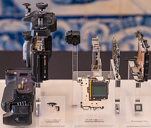 Inoltre dietro (anzi 'dentro') le dimensioni maggiorate troviamo anche ("finalmente" diranno molti) la presenza di un sistema flottante di stabilizzazione a 5 assi su cui è montato il sensore, soluzione inedita per Fujifilm fino a questo momento. Il sistema utilizza accelerometro e giroscopio a tre assi e fa leva su un doppio processore in grado di effettuare 10.000 calcoli di posizione al secondo per la massima reattività. Nell'uso lo stabilizzatore si è dimostrato molto efficace, soprattutto nell'ambito video, dove riesce a eliminare quasi del tutto il movimento anche da video girati a mano libera mentre si cammina. La stabilizzazione funziona anche con le ottiche di terze parti (come le Zeiss Touit) e con le Leica M montate tramite adattatore, oltre che con le nuove ottiche video MKX. Per minimizzare le vibrazioni Fujifilm ha rinnovato anche l'otturatore a tendina.