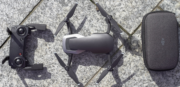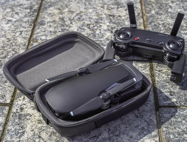 Stando alla scheda tecnica Mavic Air ha un tempo di volo massimo di 21 minuti, ma nell'uso reale si riducono a circa un quarto d'ora, contando anche che quando l'autonomia arriva verso il 20% appare l'allarme di batteria scarica e il drone entro poco comincia il suo volo verso il punto di partenza per l'atterraggio. Il drone è molto portatile e altrettanto è possibile dire per il radiocomando in kit: grazie alle levette staccabili e al design ripiegabile anch'esso occupa davvero poco spazio. È possibile far volare il drone anche solo con lo smartphone, ma la portata, come avevamo visto nel caso di Spark, è molto più limitata, tanto che alcune delle manovre automatiche fanno finire il drone al di fuori della portata del Wi-Fi. Con il radio comando questo problema non si pone, anche grazie alle due antenne integrate (anch'esse ripiegabili): inoltre la guida è molto più comodo e sicura rispetto ai comandi touchscreen. In confezione DJI include cavi MicroUSB, USB Type-C e Lightning per connettere il radiocomando a qualsiasi smartphone. Il design del supporto permette poi di adattare l'aggancio del terminale al radiocomando per qualsiasi diagonale del display. La presenza del radiocomando è ottima per la guida, ma obbliga a caricare un dispositivo in più: drone, radiocomando e smartphone devono avere tutti sufficiente carica per potersi alzare in volo.