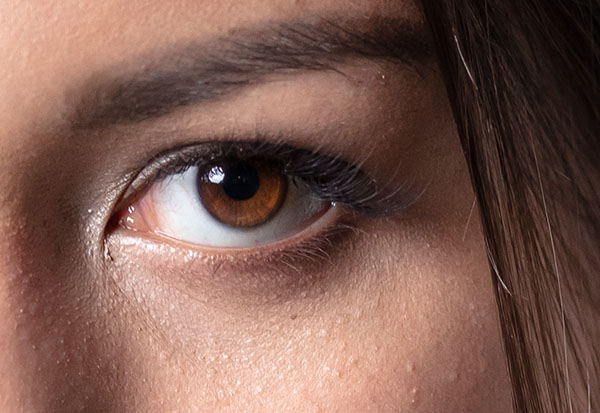 Alla massima apertura (f/1.8) si distingue chiaramente il softbox ottagonale negli occhi della modella