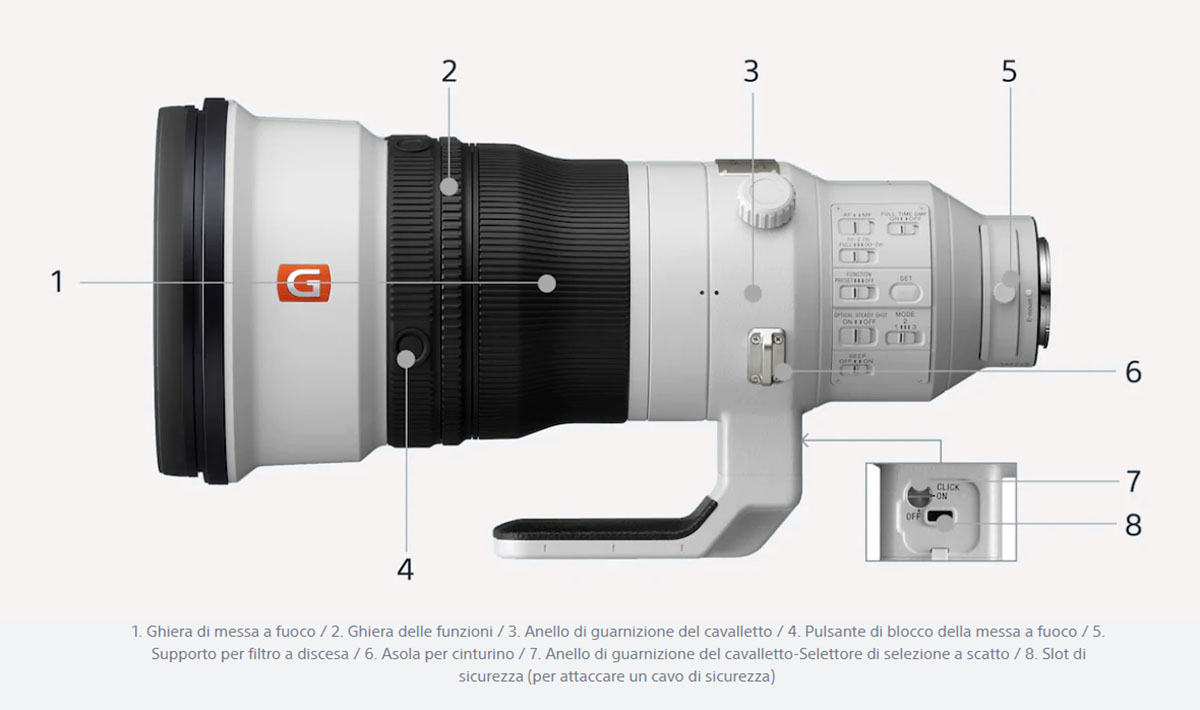 Il paraluce in fibra di carbonio conferma che nulla, in questo prodotto, sembra essere stato lasciato al caso. Da parte nostra, siamo stati particolarmente felici di trovare la ghiera funzione, una novità per Sony (del resto, questo è il primo super-tele FE) ma, allo stesso tempo, qualcosa che per i professionisti è già un classico, dal giorno in cui Canon l'ha introdotta con il 300 f/2.8L. Diciamo dunque che l'esame preliminare ha generato aspettative decisamente elevate!