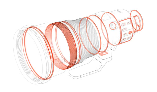 Il corpo in lega di magnesio del 400mm F2.8 GM OSS.