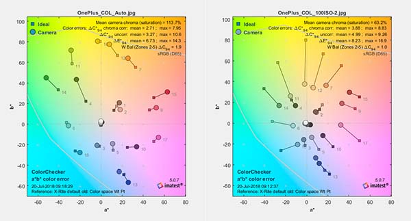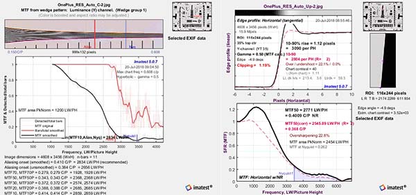 Dal punto di vista fotografico, l'OnePlus 6 è quasi la fotocopia del precedente LG G7 ThinQ. Considerando che anche questo prodotto offre il supporto RAW, il parallelismo tra i due è quasi perfetto, con una differenza: l'ottica dell'OnePlus è meno performante ai bordi (il che spiega anche il punteggio MTF slanted edge inferiore al concorrente).
