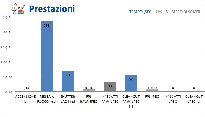 Prestazioni complessive di tutto rispetto, certamente sovrabbondanti per una fotocamera "da reportage". Più che discreta la risposta del sistema AF, penalizzato però dalla tipologia (sola rilevazione di contrasto) che gli impedisce di essere più efficace di fronte a soggetti dinamici (ottimo invece l'inseguimento di soggetti lenti).