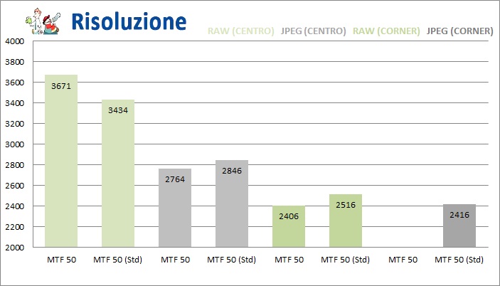 Punteggi molto elevati per una APS-C da 24 Mpixel, grazie al fatto che, come promesso dal costruttore, le ottiche di questo sistema hanno la capacità di sfruttare meglio sensori compatti dall'elevata densità di pixel.