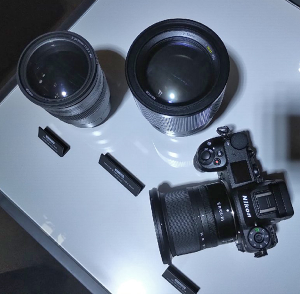 Appena si prende in mano la nuova Nikon il primo pensiero è: "È davvero grossa". Nikon ha scelto di allargare la nuova baionetta rispetto a quella F-Mount che attualmente (e dal 1959) equipaggia le reflex a pellicola prima e digitali ora. 44mm contro 55mm: l'allargamento del bocchettone dovrebbe garantire, a detta dei tecnici, la possibilità di costruire ottiche di grande qualità, perfettamente corrette dal punto di vista delle aberrazioni e in grado di illuminare al meglio anche le zone periferiche del sensore. Un innesto largo che ha permesso di spingersi molto vicini al sensore, riducendo il tiraggio a soli 16mm, contro i 46,5mm del sistema reflex. Con ottica montata (lo zoom 24-70 F4, ma anche il fisso 35mm F1.8) il sistema è più grosso della reflex APS-C D5600 con ottica kit. Se si separano ottica e corpo, la maggiore sottigliezza di quest'ultimo permette però uno stoccaggio più semplice in borsa. Nel confronto con la reflex D850, che ha un sensore molto simile a quello di Nikon Z6, di pari risoluzione, il minore ingombro del sistema reflex è maggiormente apprezzabile. Le tre ottiche attualmente in gamma sono molto grosse, più di quello che ci si aspetterebbe, ad esempio, da un 35mm f/1.8. La baionetta larga sicuramente gioca un ruolo in tutto ciò: sarà poi da valutare meglio con prove tecniche se le dimensioni maggiorate hanno vantaggi apprezzabili in termini di qualità. A dir poco enorme è il prototipo dell'ottica 58mm F0.95, una delle prossime nella roadmap.