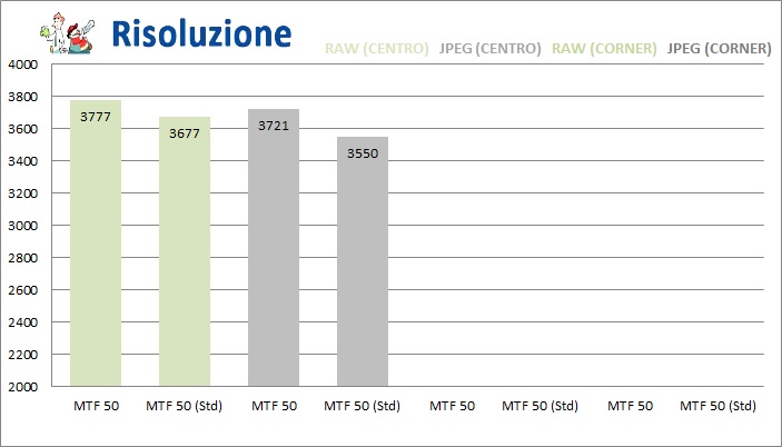 Il sensore tradizionale non penalizza la nitidezza della fotocamera. I JPEG sono di forte impatto grazie anche a un'elaborazione aggressiva effettuata in-camera. I RAW risultano molto incisi e necessitano di minimi ritocchi in post-produzione.