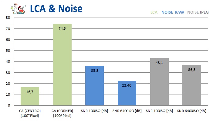 Il rapporto segnale/rumore @ 6400 ISO non è particolarmente elevato, ma la resa finale è analoga a quella di molte APS-C attuali: ottimo dettaglio fino a 3200 ISO compresi, con le due sensibilità superiori utilizzabili per il web o per stampe in formato inferiore all'A4.