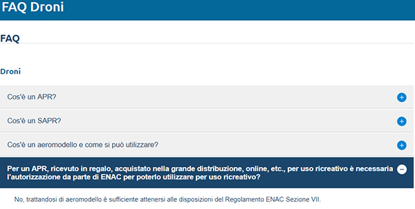 Parte della confusione che aleggia sul web, in realtà, è da addebitare alla stessa ENAC, che nella sezione FAQ del suo sito sembra dare il via libera ai voli senza attestato con gli APR, equiparandoli agli aeromodelli, nei casi di uso ricreativo. Nella domanda appena sopra però viene segnalato che può essere considerato aeromodello solo un velivolo 'non dotato di equipaggiamenti che ne permettano un volo autonomo'. Un drone 'giocattolo' o comunque privo di sistemi di guida avanzati può ricadere nella categoria 'aeromodelli', ma tutti i multicotteri di produttori come DJI, Parrot e Yuneec, per la presenza della videocamera, ma soprattutto per la presenza di sistemi di ritorno autonomo al punto di partenza in casi come la perdita del segnale o un livello troppo basso della batteria, non possono essere considerati aeromodelli, ma ricadono nella categoria dei SAPR.