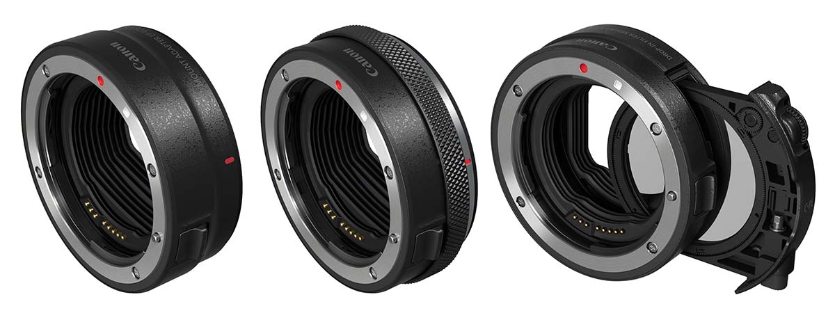 Non mancherà, naturalmente, un adattatore EF - RF, anzi gli adattatori saranno tre: quello standard, reso disponibile con la fotocamera e da noi utilizzato, e altre due versioni più specifiche. Una di queste ospiterà un porta filtri drop-in, mentre l'altra, a nostro avviso particolarmente interessante, integrerà quella ghiera programmabile che sarà presente su ogni ottica RF, e farà quindi parte integrante del modo d'uso delle mirrorless Canon Full-Frame. Con questo adattatore, le ottiche EF saranno davvero equiparabili a ottiche native.
