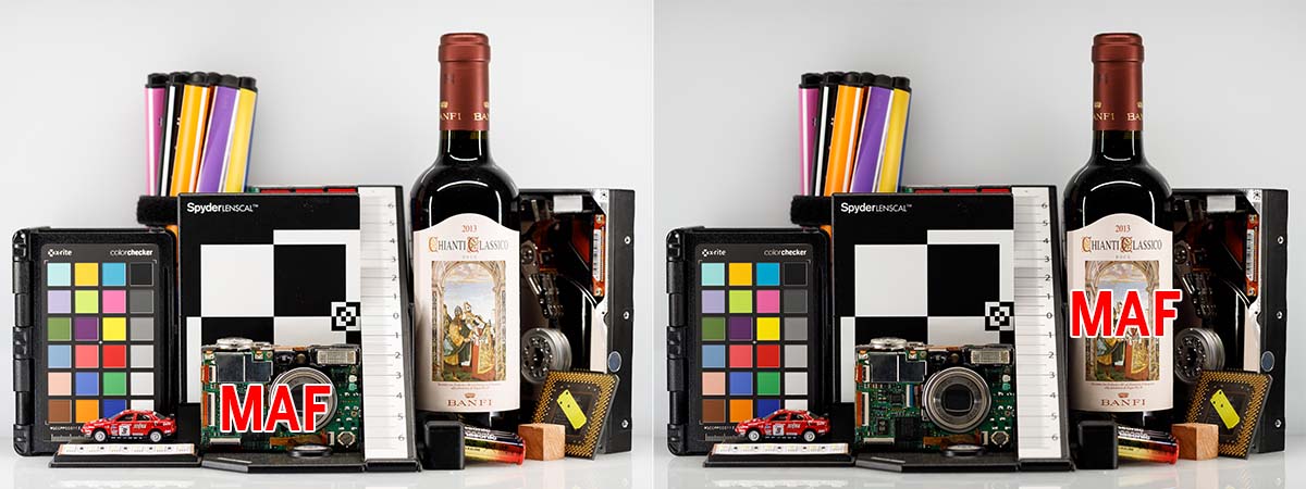 Cogliamo lo spunto dei risultati numerici per aprire una parentesi sull'obiettivo RF 24-105mm, che si è dimostrato, alla prova dei fatti, davvero eccellente in termini di nitidezza. Non ha infatti sfigurato di fronte all'EF 100mm f/2.8L IS Macro, che quanto a puro potere risolvente non teme confronti. Al contrario, allontanandosi dal centro ha persino prevalso, con in particolare un eccellente risultato agli angoli: un punteggio ancora superiore alle 2500 LW/PH (0,284 C/P) dimostra come il minor tiraggio della flangia RF garantisca effettivamente un chiaro vantaggio rispetto all'attacco EF.